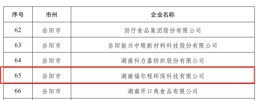 2023年3月14日,湖南省工业和信息化厅关于发布2023年度“湖湘精品”中小企业品牌能力提升试点企业名单的通知,经企业自主申报,市州工信局推荐,省工信厅审核,福尔程环保荣幸入选。